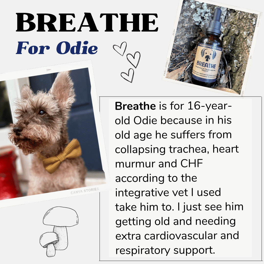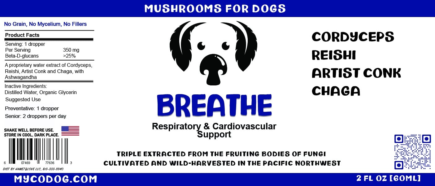 Breathe by MYCODOG is a premium blend of natural ingredients, carefully crafted to support respiratory and cardiovascular health. Our unique formula combines the potent benefits of Cordyceps, Reishi, Artist Conk, and Chaga mushrooms, with the added stress-relieving properties of Ashwagandha, all preserved in organic, vegetable-derived glycerin. Trusted by those who prioritize their well-being, Breathe is the natural way to promote a healthier, more balanced lifestyle.