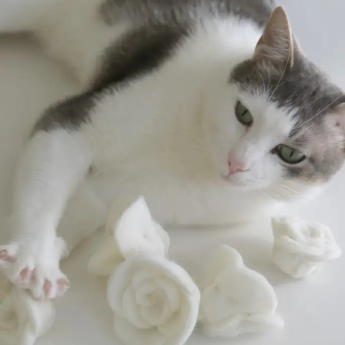 Wool felt cat toy set with 5 roses