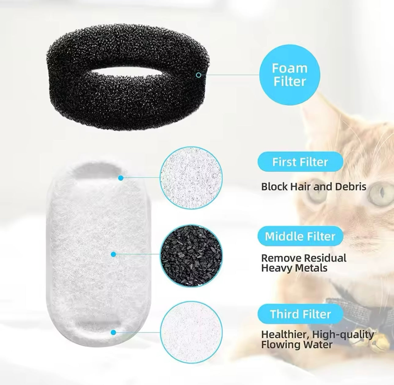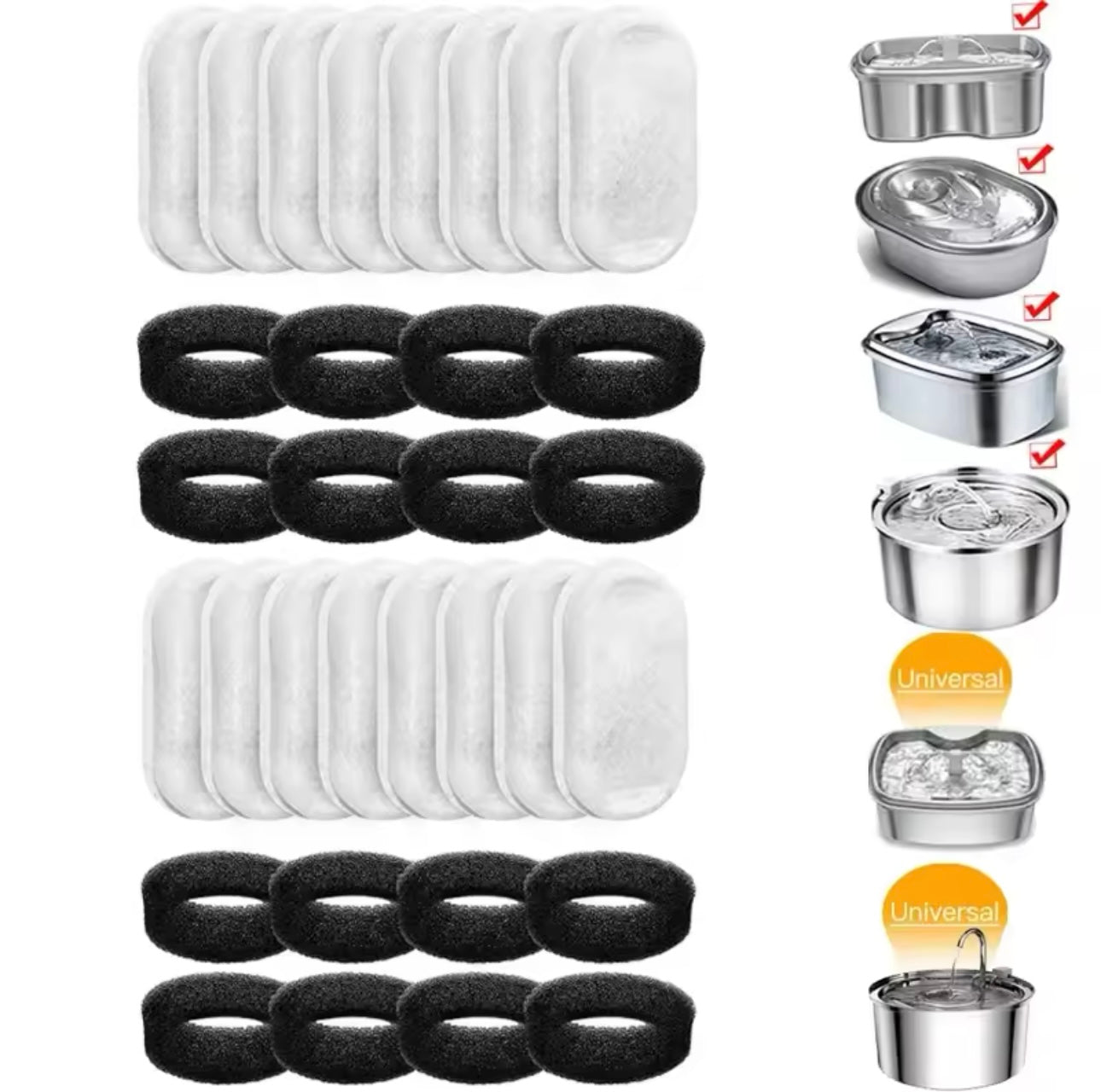 The Replacement Carbon Filters & Filter Rings - Set of 16 is designed to keep your stainless steel water fountain running smoothly and your pet's water fresh and clean. This set includes 16 carbon filters and 16 filter rings, ensuring long-lasting filtration to remove impurities, odors, and debris from the water. The high-quality activated carbon enhances water quality, encouraging your pet to stay hydrated. Easy to install and replace, these filters are compatible with most stainless steel pet water fountains, providing an economical and effective solution for maintaining your pet's health and hydration.