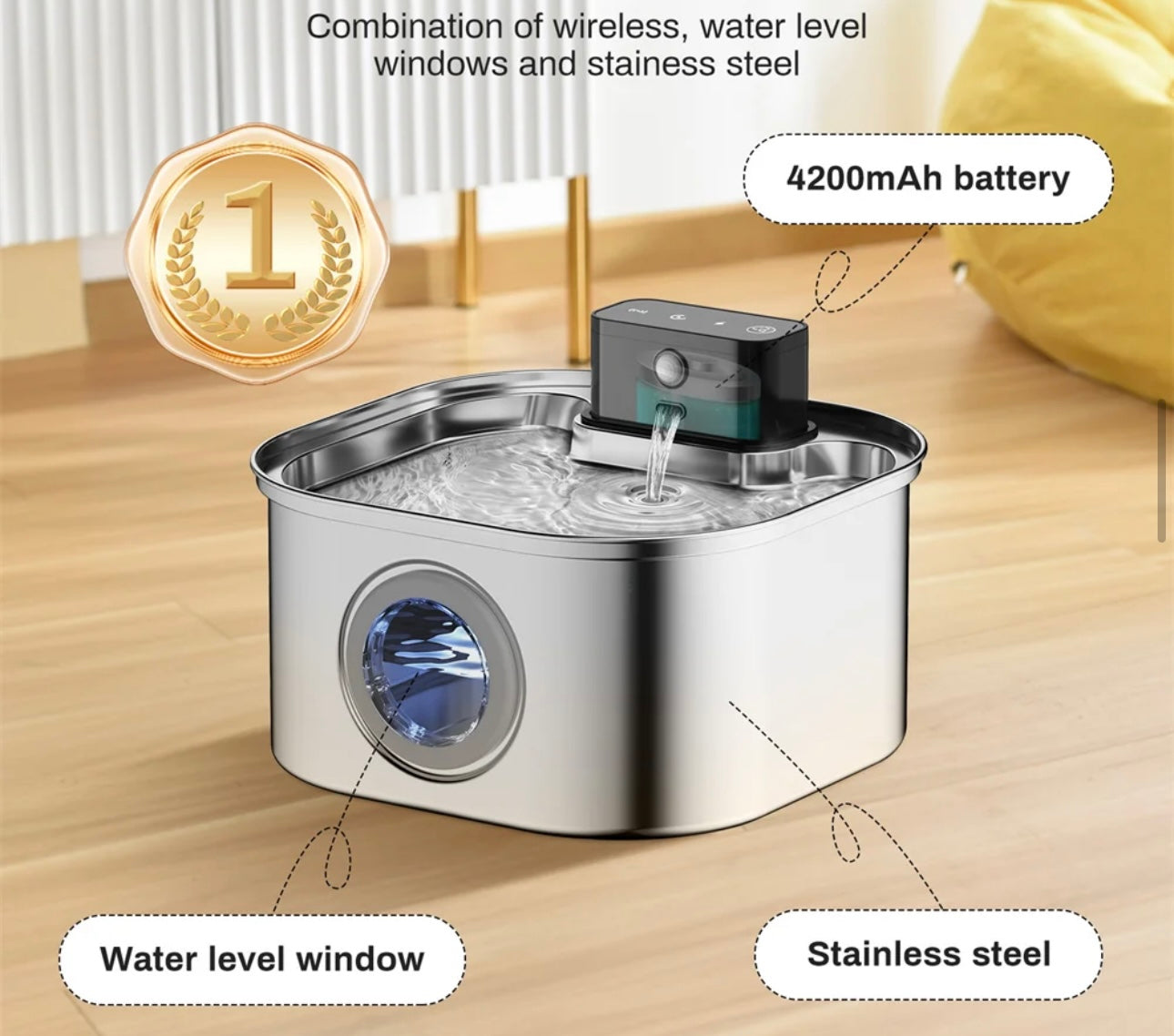 Ensure your pet stays hydrated with this innovative wireless drinking fountain. Designed with a 6-layer filtration system and ultra-quiet operation, it delivers fresh, clean water while offering unmatched convenience and peace of mind.