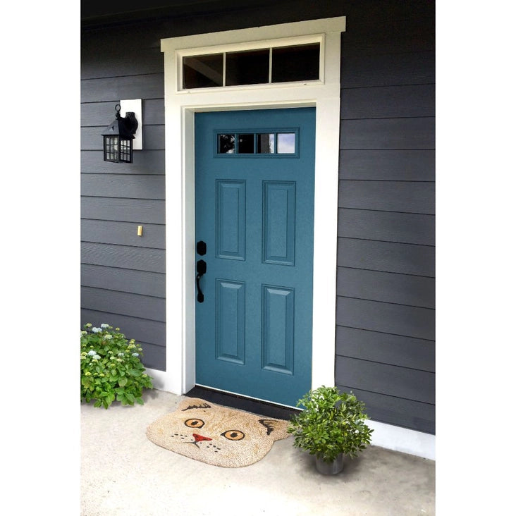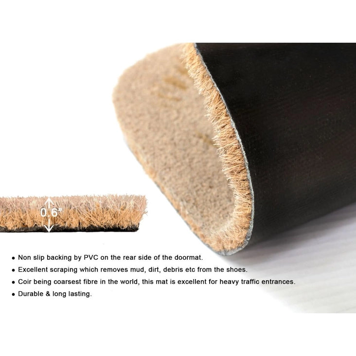 Introducing our Cute Cat Face Doormat! Made from coir, a sturdy and durable material, this mat will keep your floors clean and add a touch of cuteness to your doorstep. With its non-skid vinyl back, you won't have to worry about slipping. Simply shake or sweep to keep it clean. Made in India.