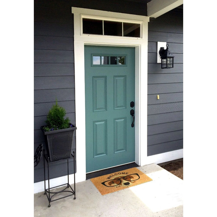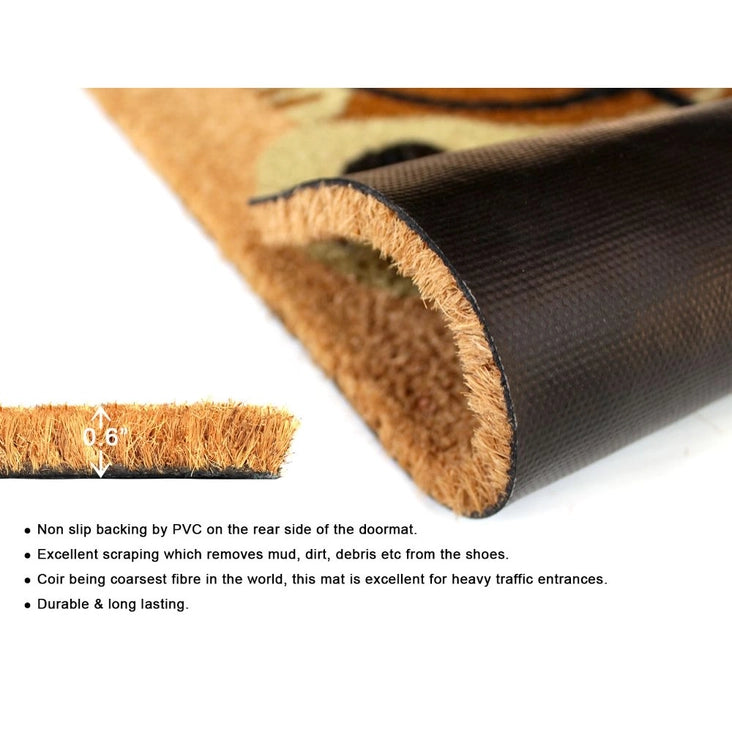 Introducing our Cute Dog with Glasses Welcome Doormat! Made from coir, a sturdy and durable material, this mat will keep your floors clean and add a touch of cuteness to your doorstep. With its non-skid vinyl back, you won't have to worry about slipping. Simply shake or sweep to keep it clean. Made in India.