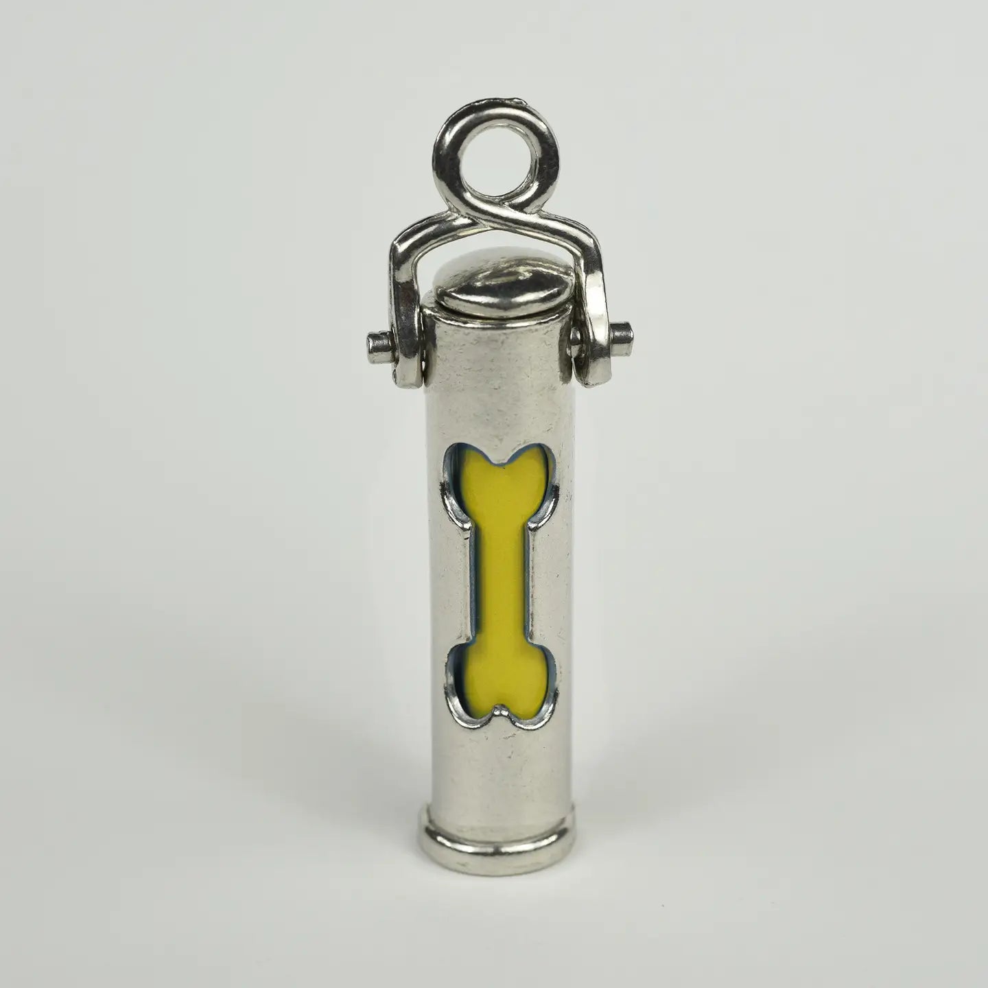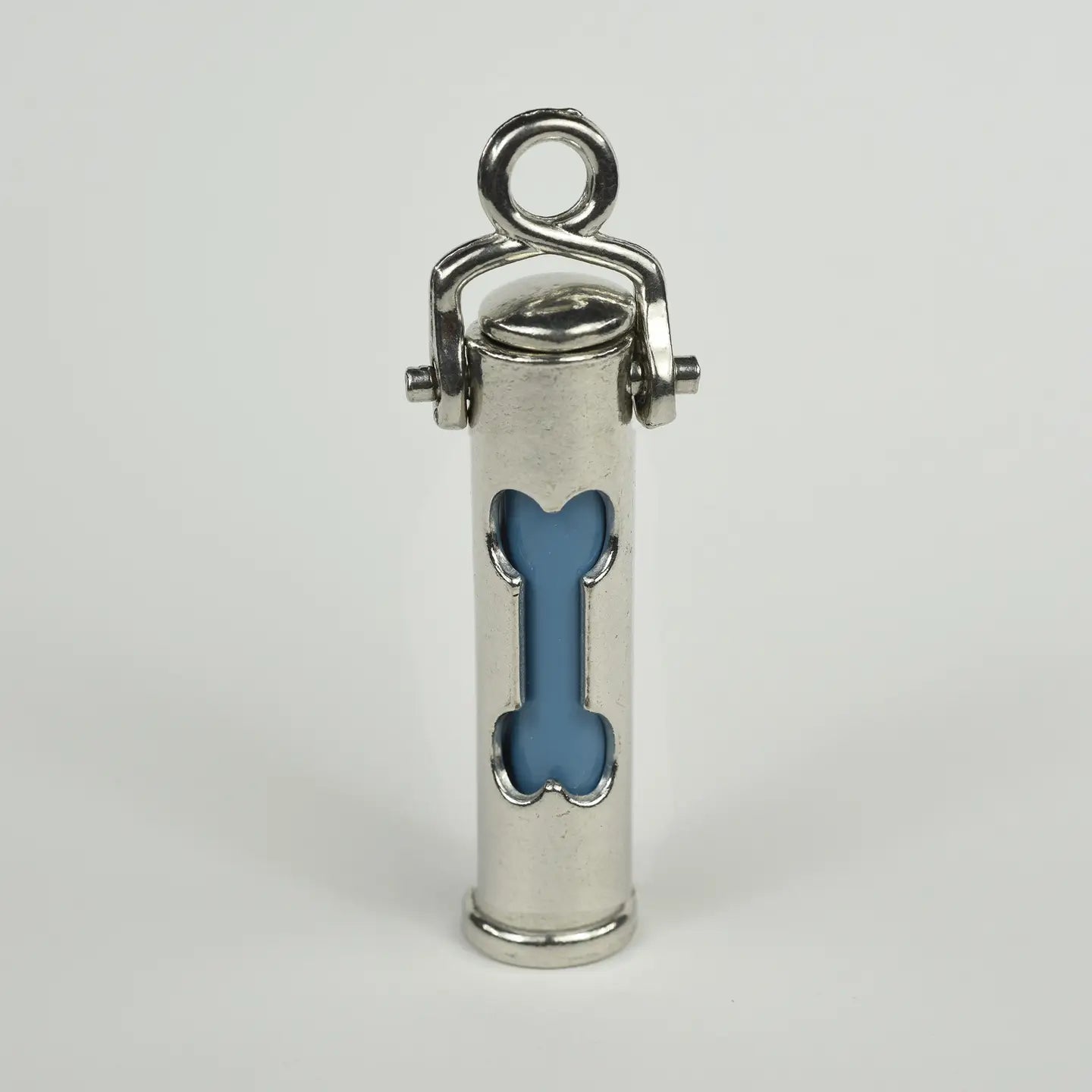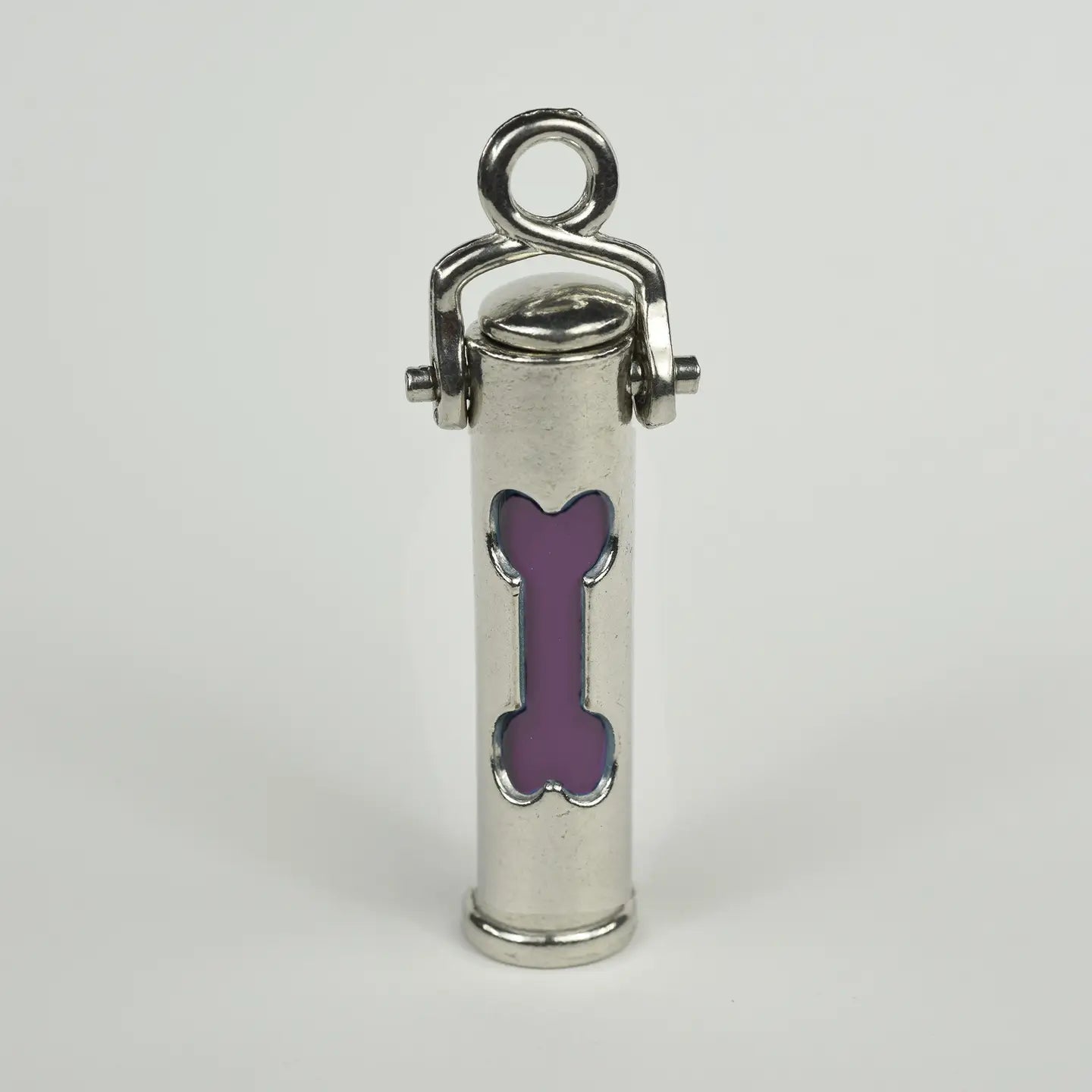 Keep the memory of your beloved furbaby close at heart with this playful design. This key chain urn is perfect keeping a memento of your pet with you at all times. You can have a clear glass vial or choose a colored vial for a more personal touch. Can also be worn as a necklace.