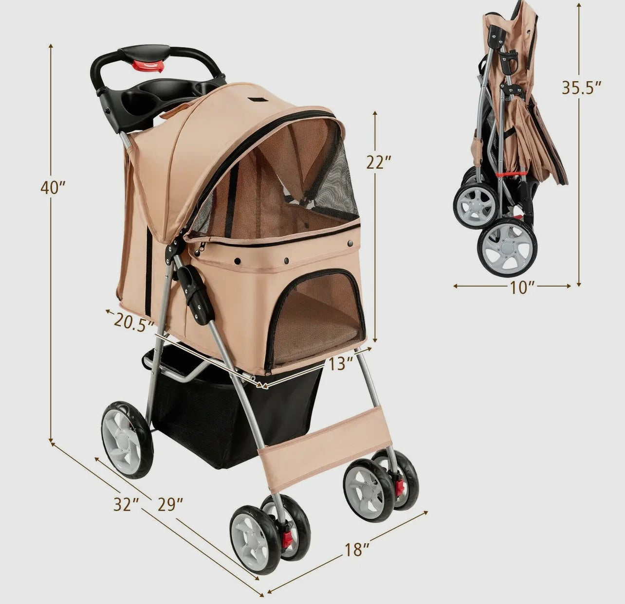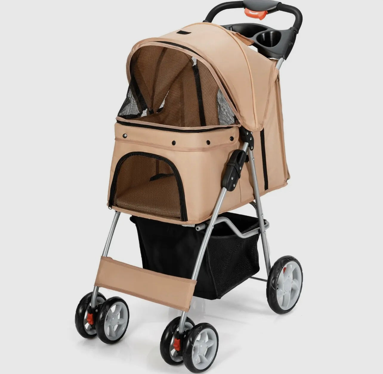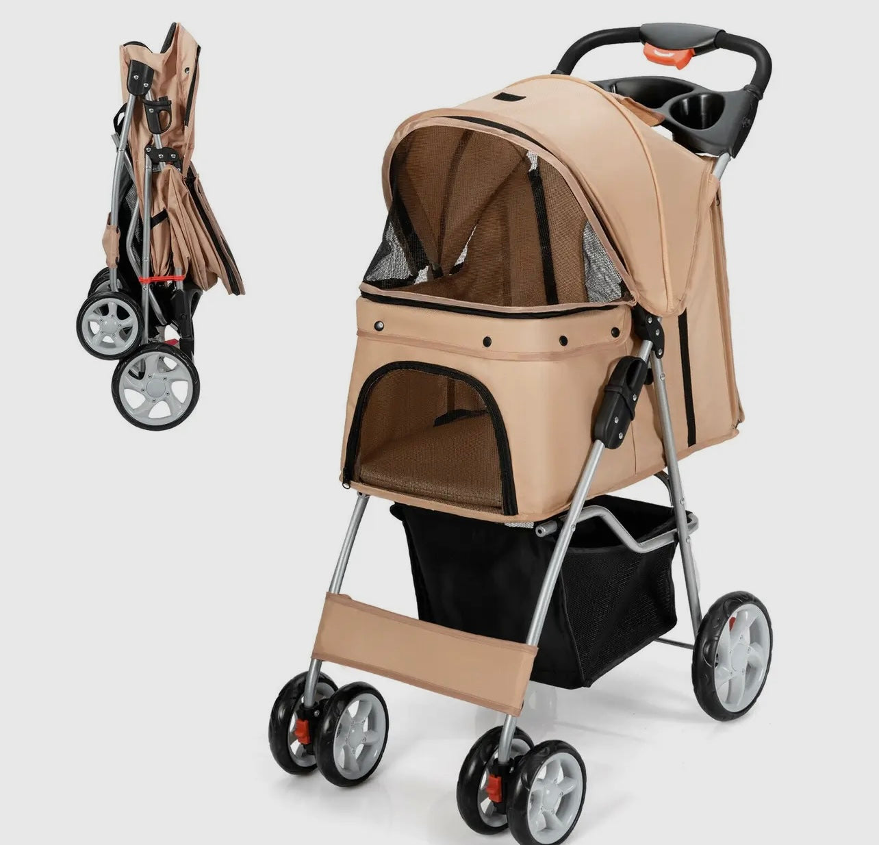 Foldable Pet Stroller with attached Storage Basket