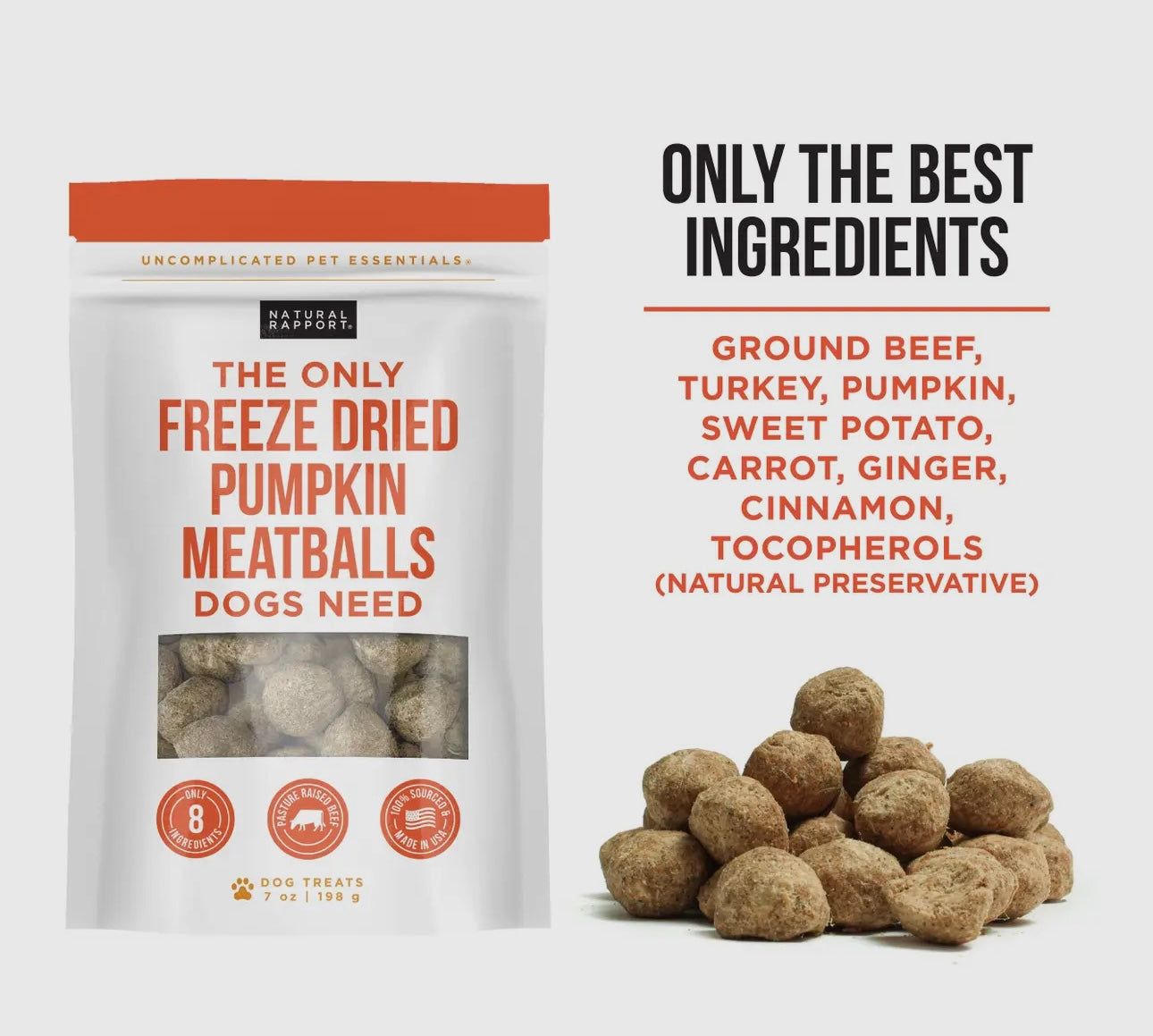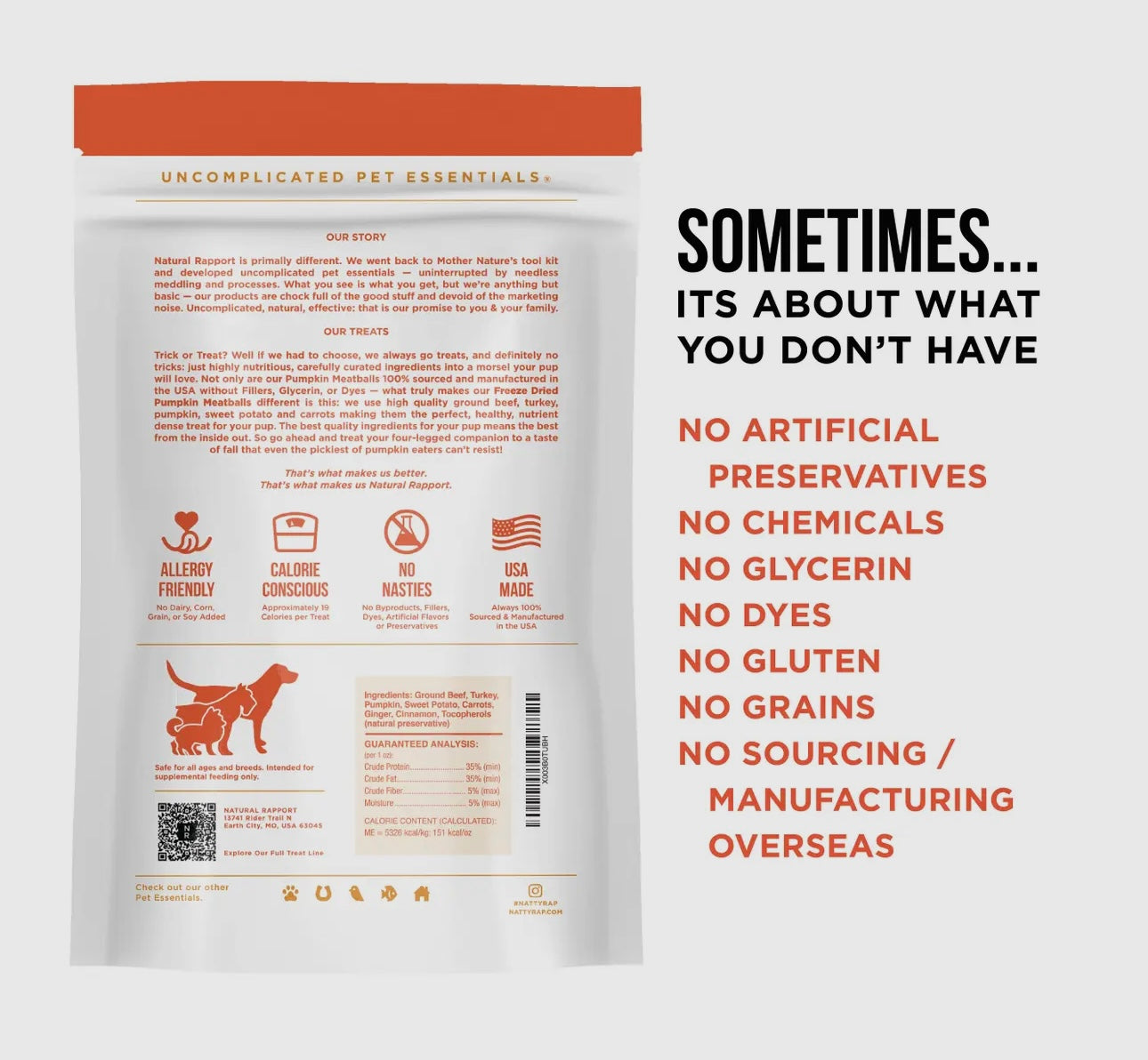 Treat your dog to the delicious, nutritious goodness of our Freeze-Dried Beef & Pumpkin Meatballs! Crafted with high-quality beef and real pumpkin, these treats offer a protein-rich snack with the added benefits of fiber to support healthy digestion. Our freeze-drying process preserves the natural flavors and nutrients, creating a treat that’s as wholesome as it is tasty. With no grains, fillers, or artificial additives, these bite-sized meatballs are ideal for training, rewarding, or anytime snacking. Give your dog a tasty boost of nutrition in every bite—tail wags guaranteed!