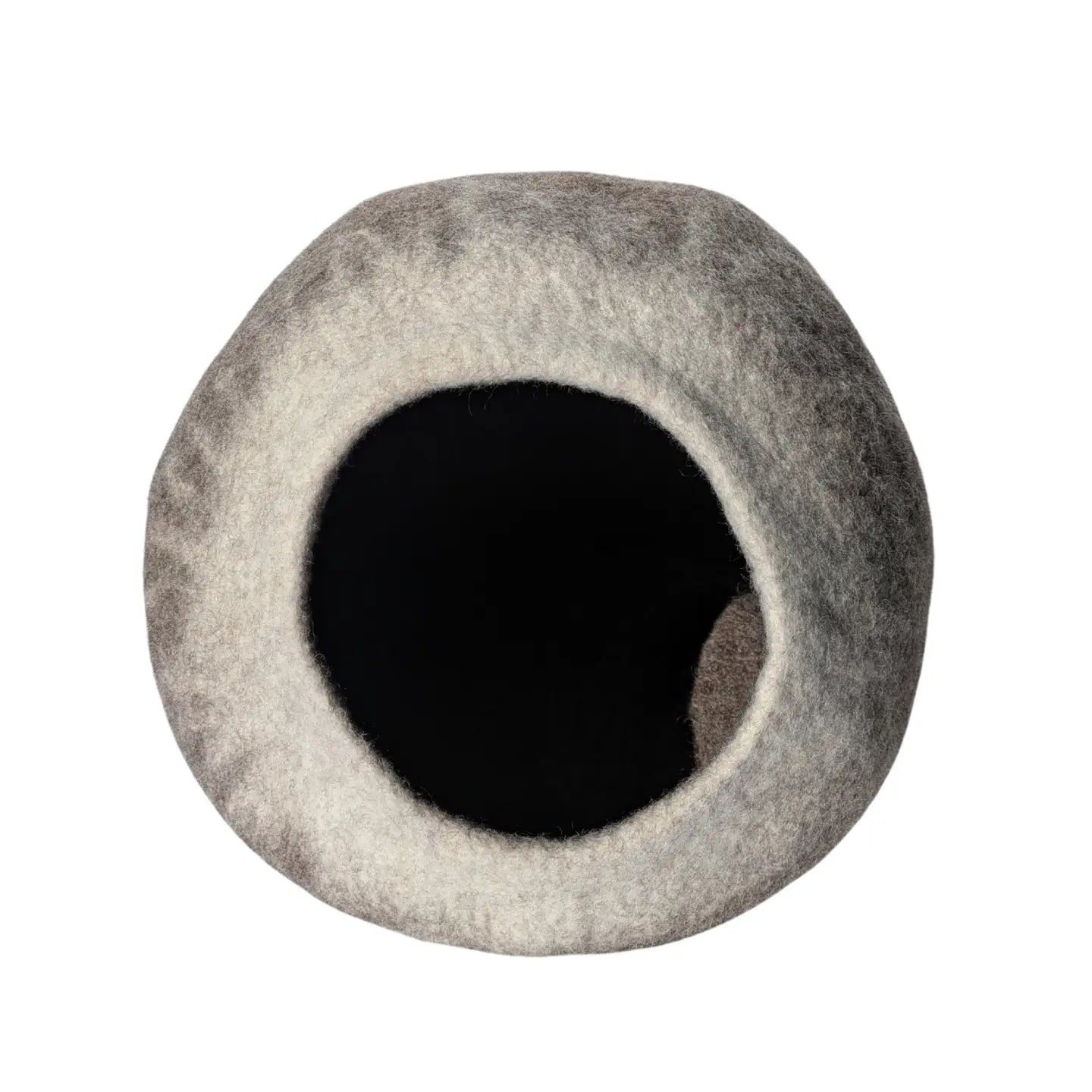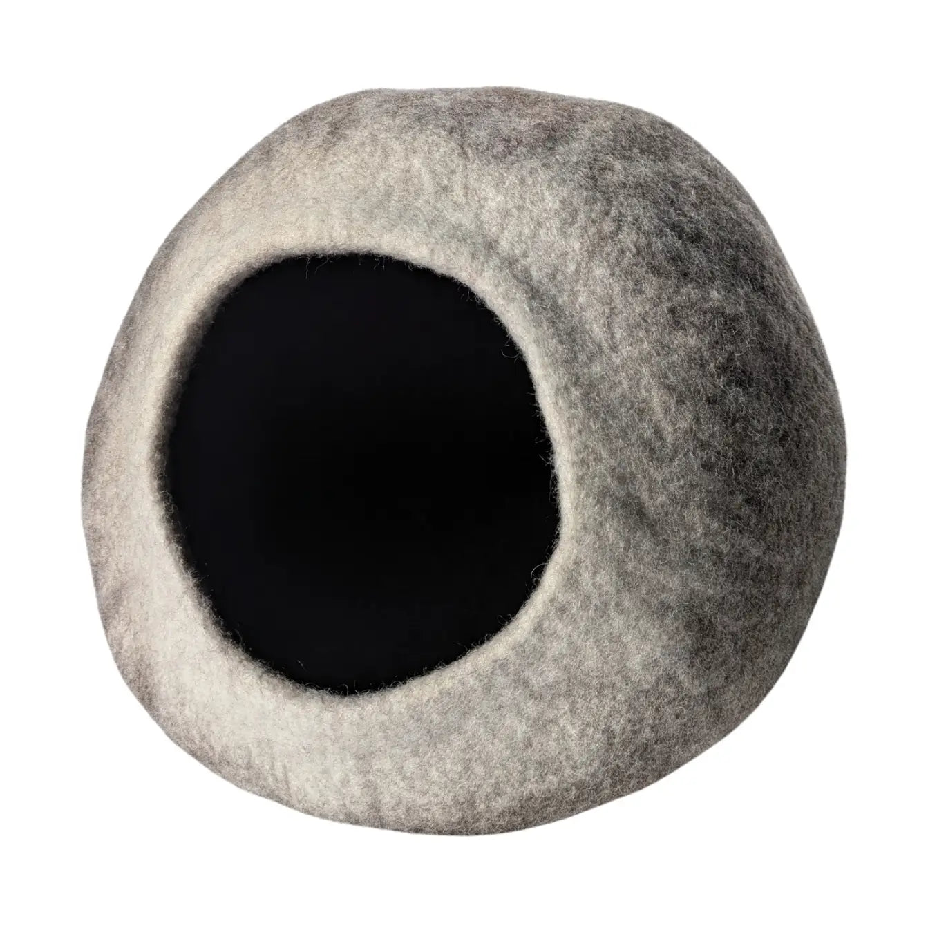 This handmade all natural ombré cat cave is crafted with 100% virgin wool felt using a 100% handmade technique. The ombré felted wool pattern gives a unique and stylish touch while providing a cozy and natural place for your cat to rest. Made with care and expertise in Nepal.
