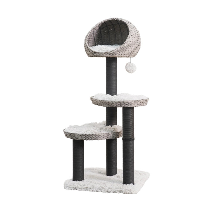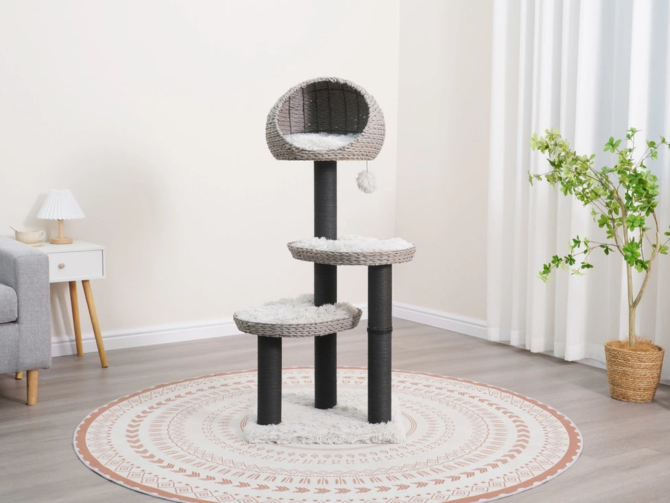 Boho Chic Style Handwoven cat tree showcasing, a fusion of natural materials, and intricate weaving techniques. Expertly created using sustainably sourced materials such as paper rope and sisal, ensuring durability and eco-consciousness. -Our handwoven cat tree is an ode to natural materials' enduring beauty and versatility. The weaving process is a labor of love, resulting in unique furniture that reflects the skill and passion of the artisans who create it. Receive free replacement parts within 6 months from the purchase date or receive discounted replacement parts for purchases 6 months old but less than a year old. Must provide proof of purchase and images of damaged parts to determine eligibility. For orders over a year old, we offer replacement parts for purchase. Contact us at operating@petpalsgroup.com to learn more.
