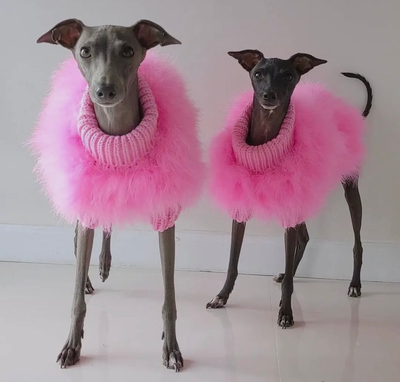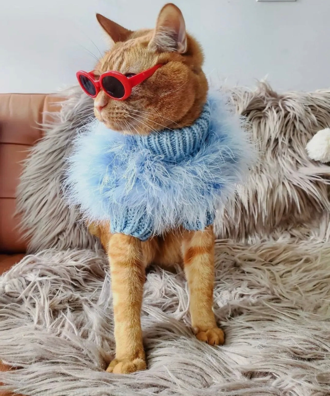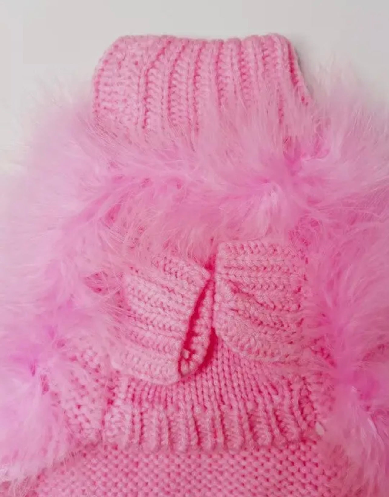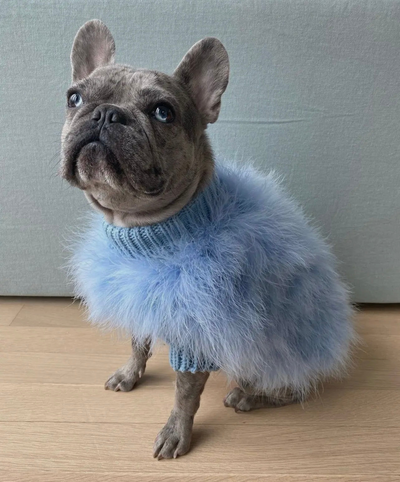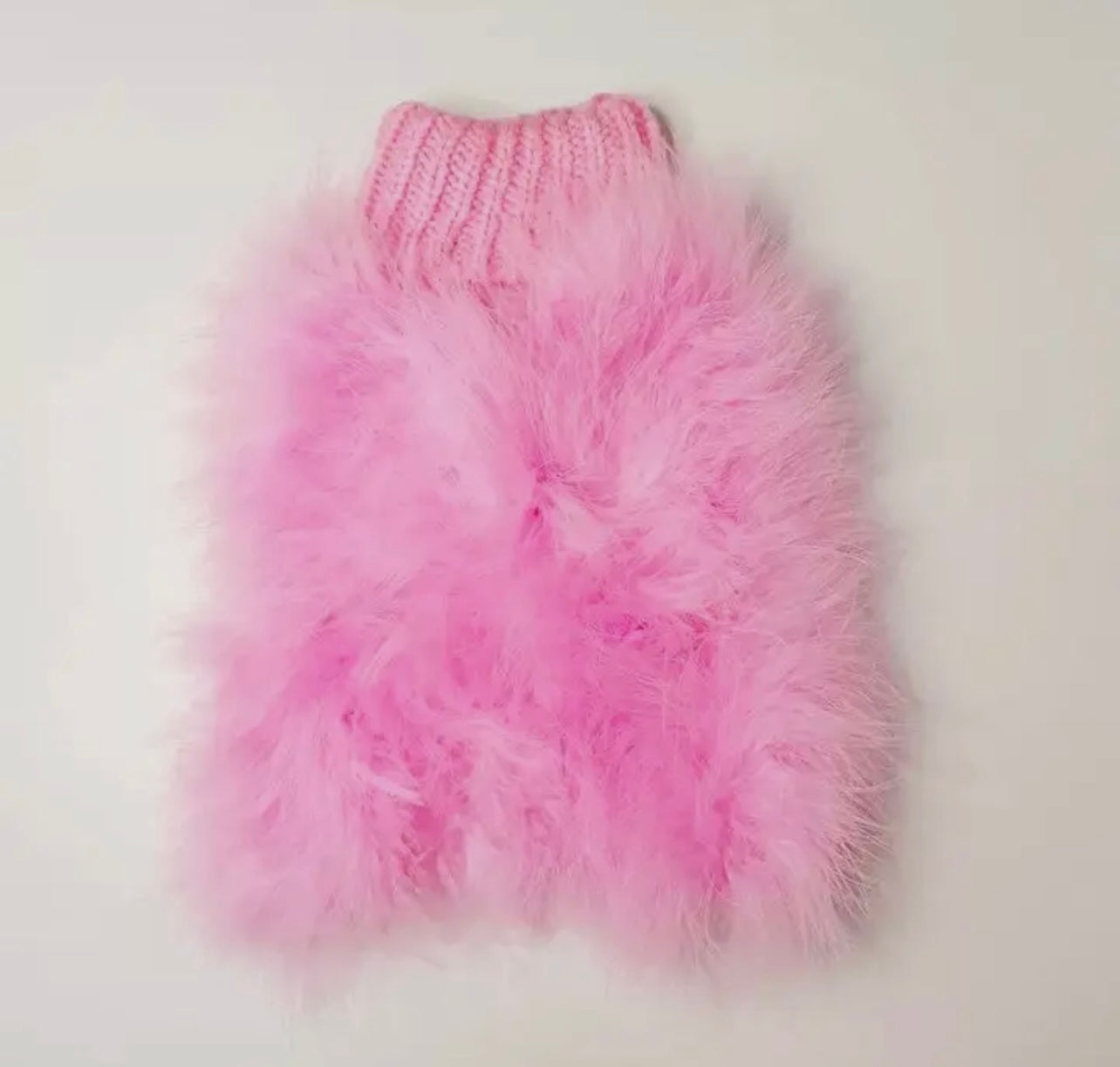 The Haute Couture Luxury Feather Pet Sweater is an elegant and sophisticated garment designed for pets. This luxurious sweater features a high turtleneck and is adorned with delicate feathers, providing a chic and stylish look. Crafted with high-quality materials, it ensures your pet stays warm and comfortable while making a fashion statement. Perfect for special occasions or everyday glamour, this sweater is ideal for pet owners who want to dress their pets in high-end fashion.