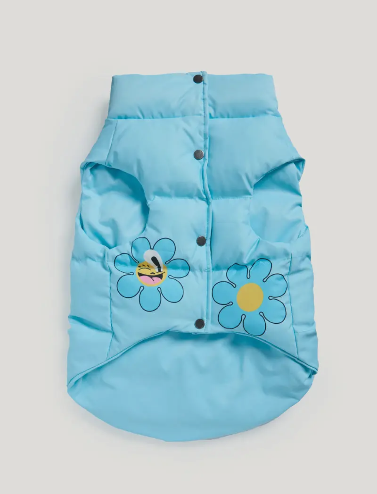 Marc Jacobs x Hattie Stewart Blue Butterfly Flower Design Puffer Dog Vest