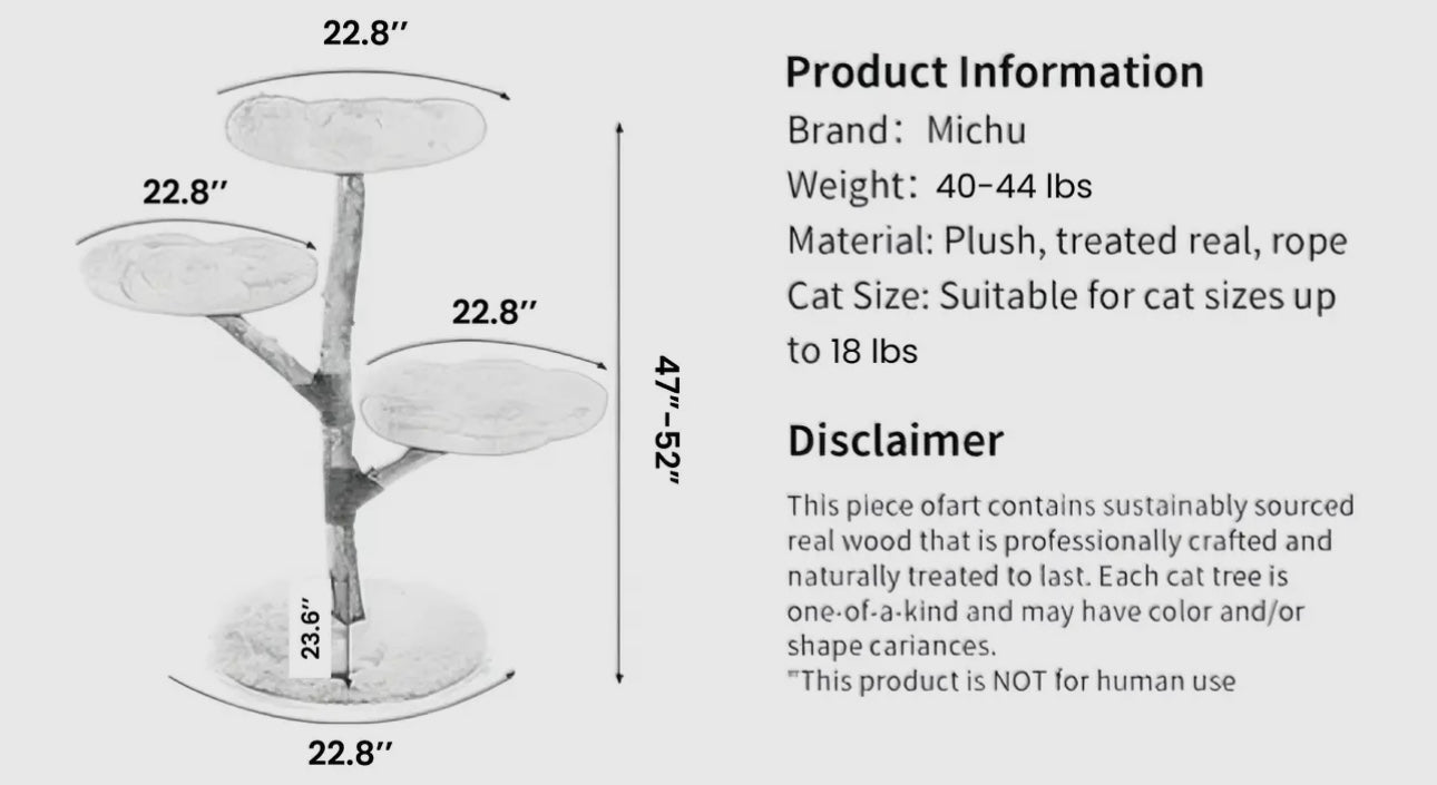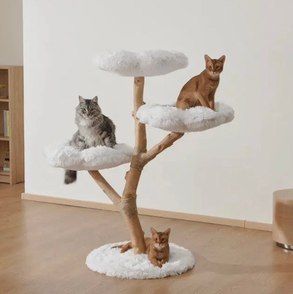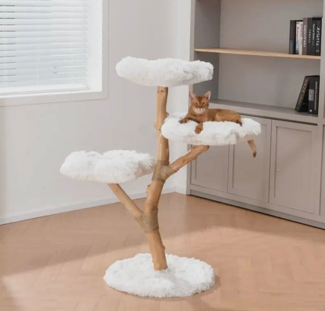 The tree is adorned with fluffy blossom flower petals that serve as comfortable resting spots for your feline friend. These soft, plush petals offer cozy perches for lounging, napping, or observing their surroundings from an elevated position. The whimsical flower petal design adds an enchanting aesthetic to your space, making this cat tree both a functional and decorative piece. Ideal for cats who love to climb, scratch, and relax in style.