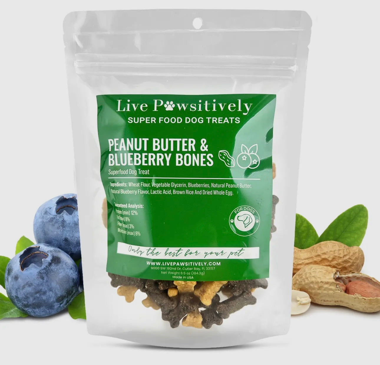 Peanut Butter and Blueberry Bones Superfood Dog Treat