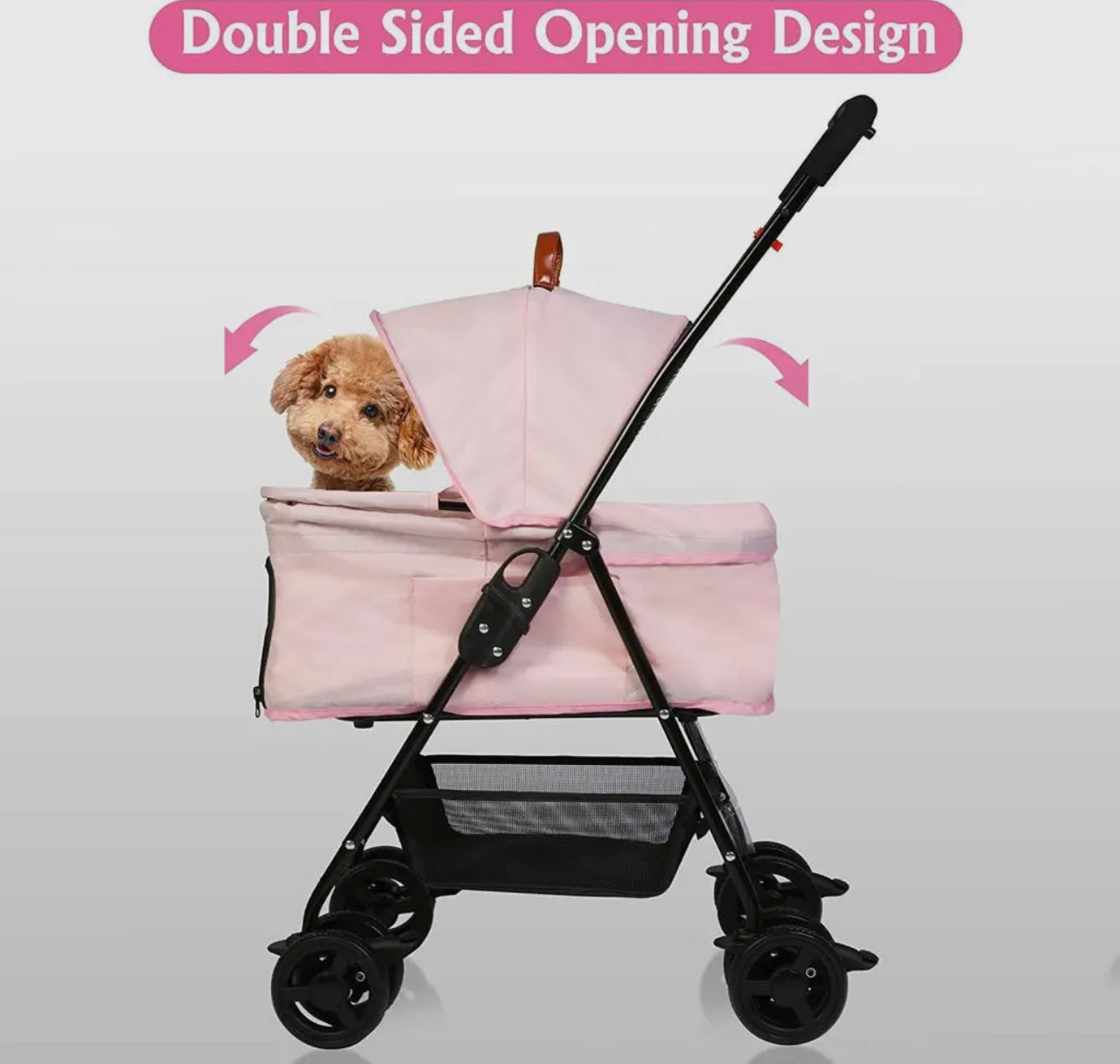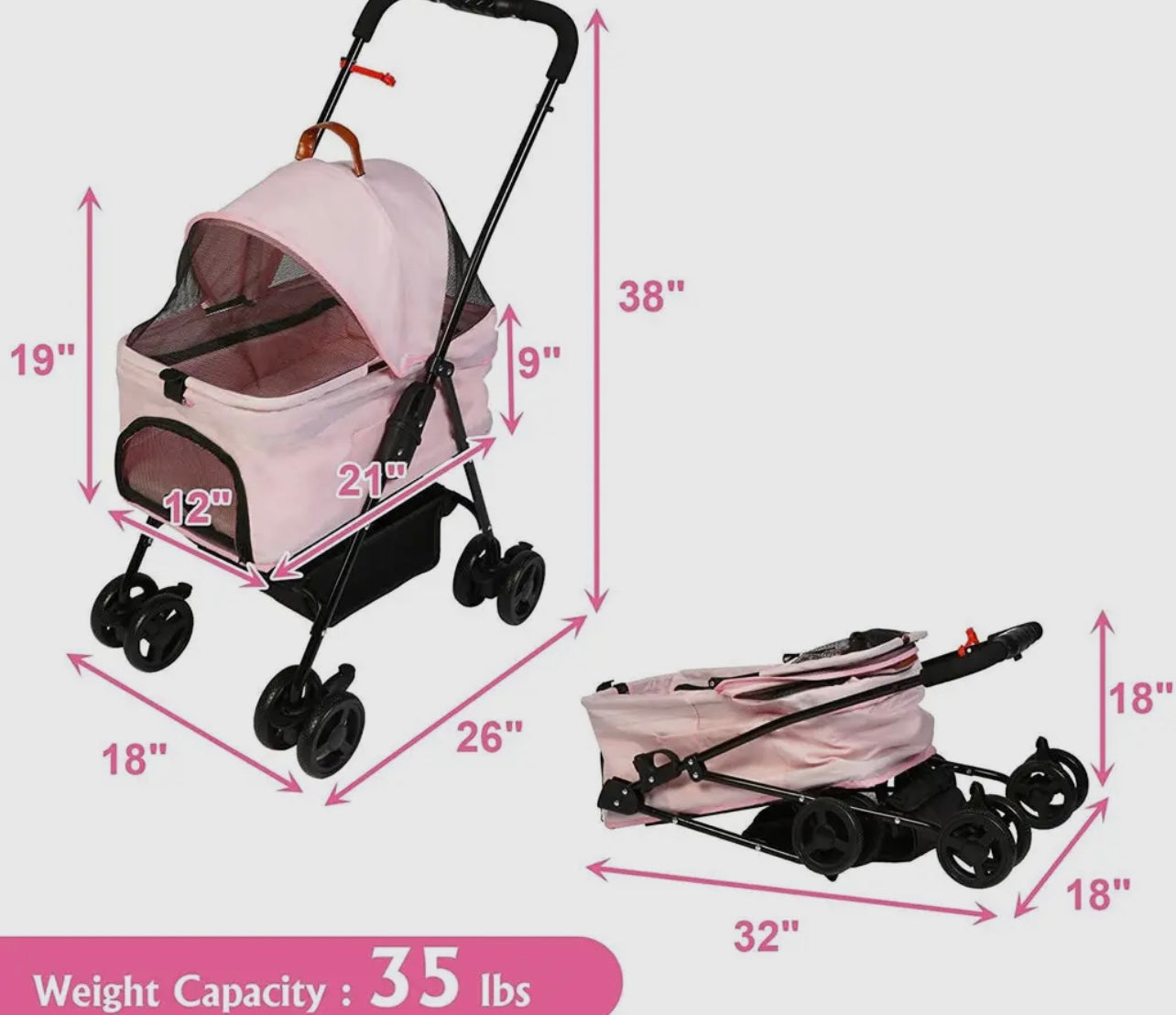 Pink Folding Pet Stroller For Small/Small Medium Dogs and Cats