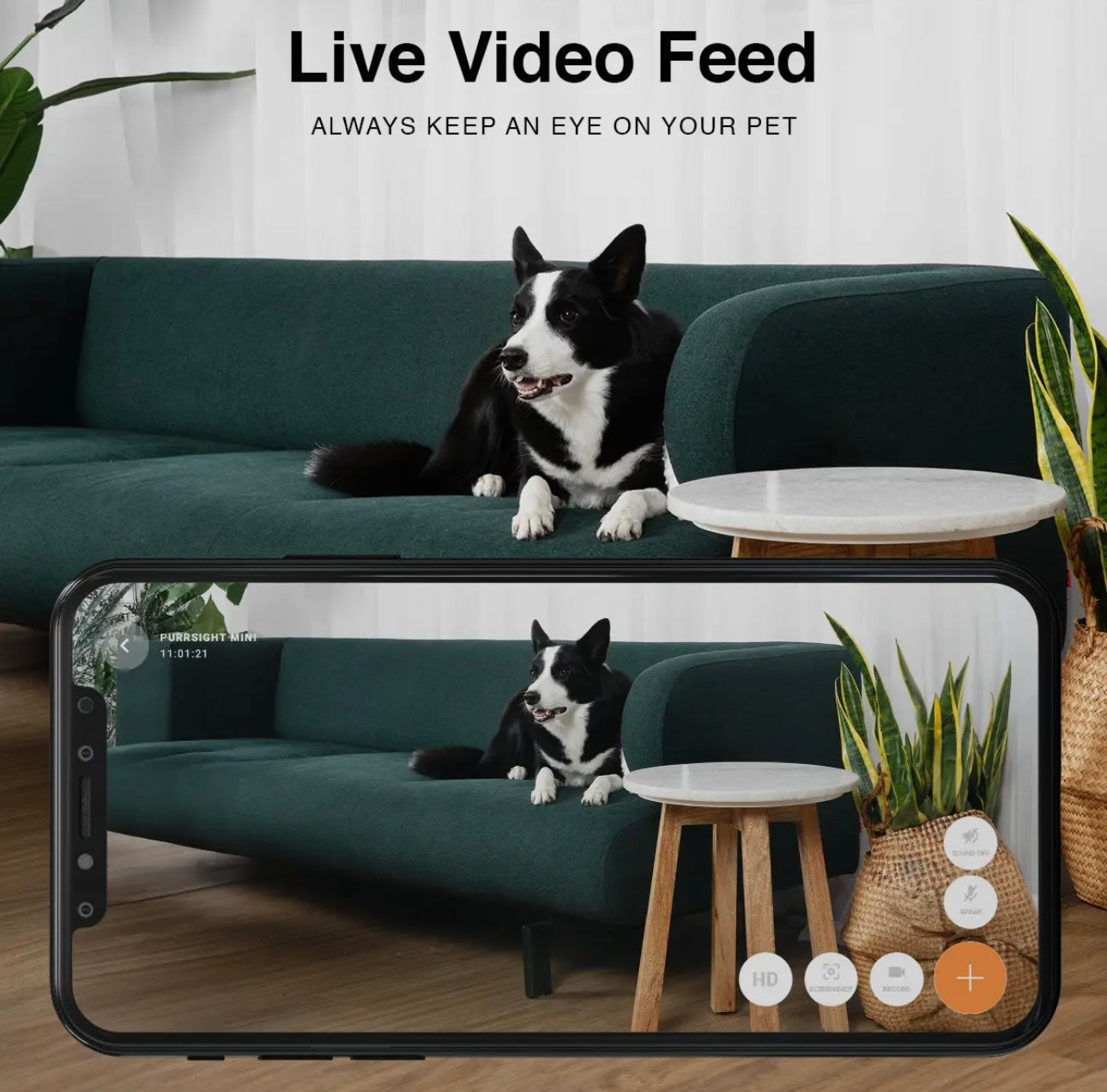 The INSTACHEW Purrsight Mini HD Pet Camera carries a contemporary design to compliment any home aesthetic while delivering optimum security and safety to your home with comfort and care for your pet to be able to interact.