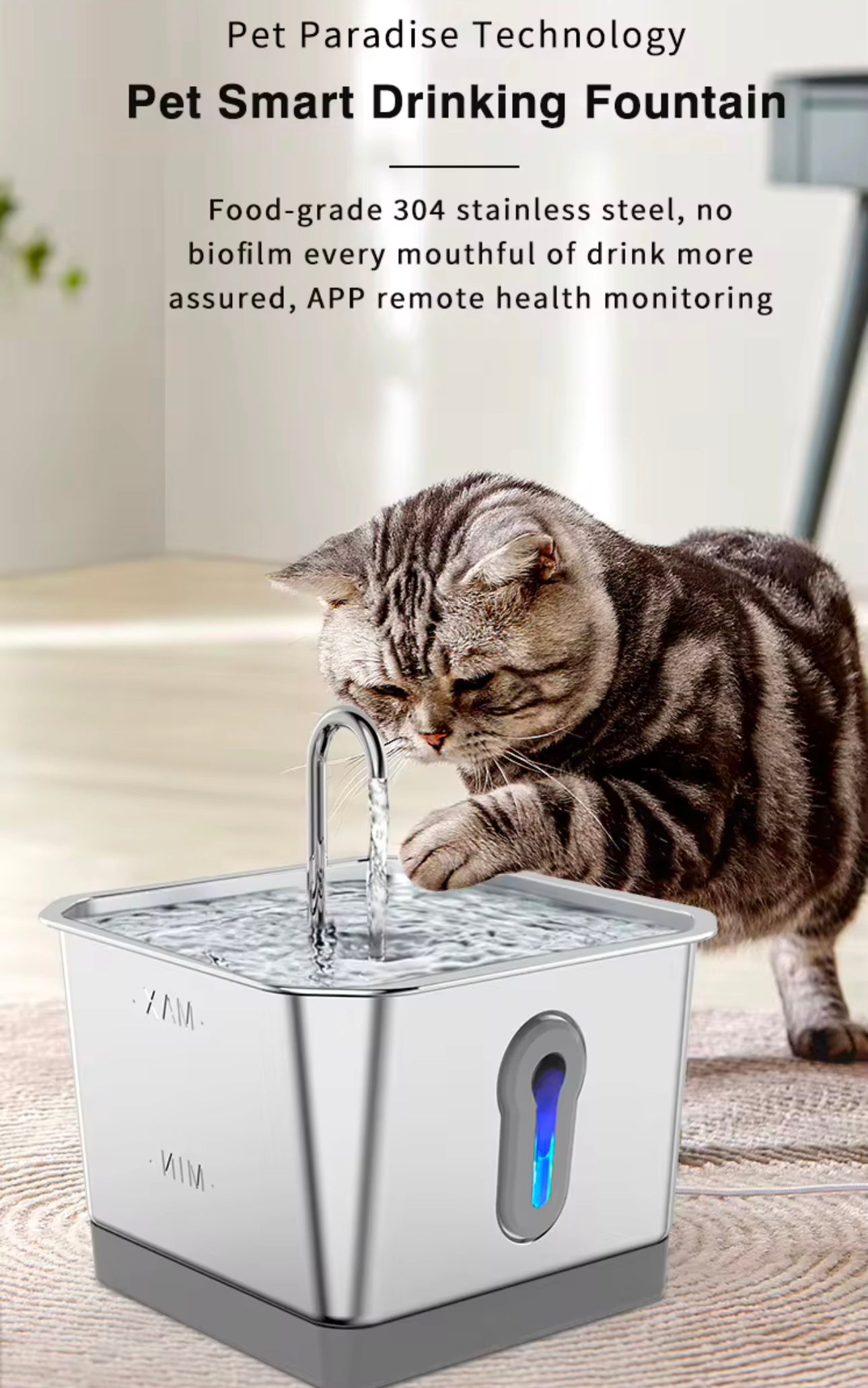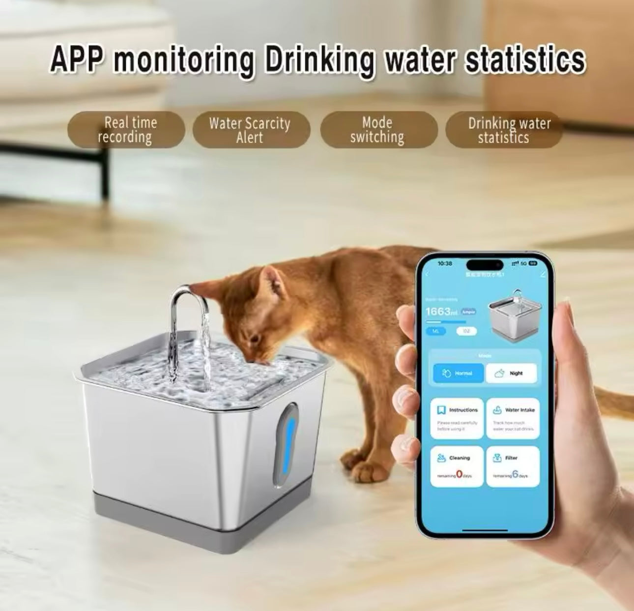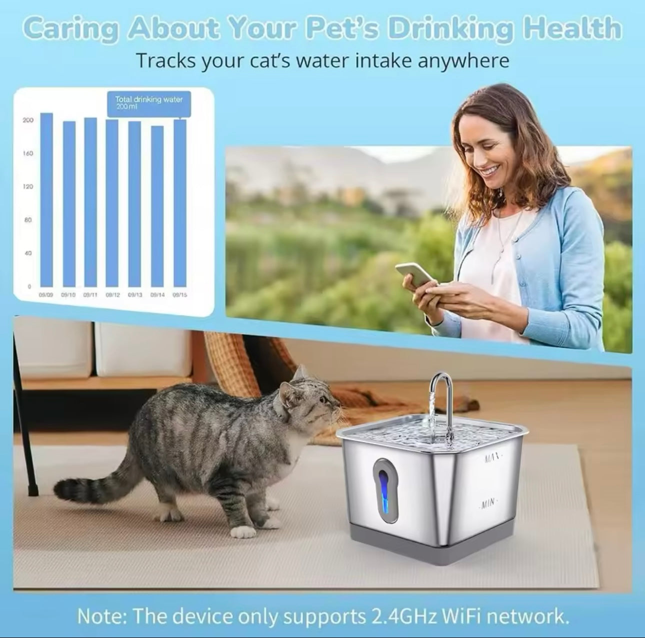 Upgrade your pet's hydration routine with this advanced smart stainless steel drinking fountain. Featuring app connectivity, it allows you to monitor and manage your pet's water intake with ease while providing fresh, clean water in a sleek and durable design.