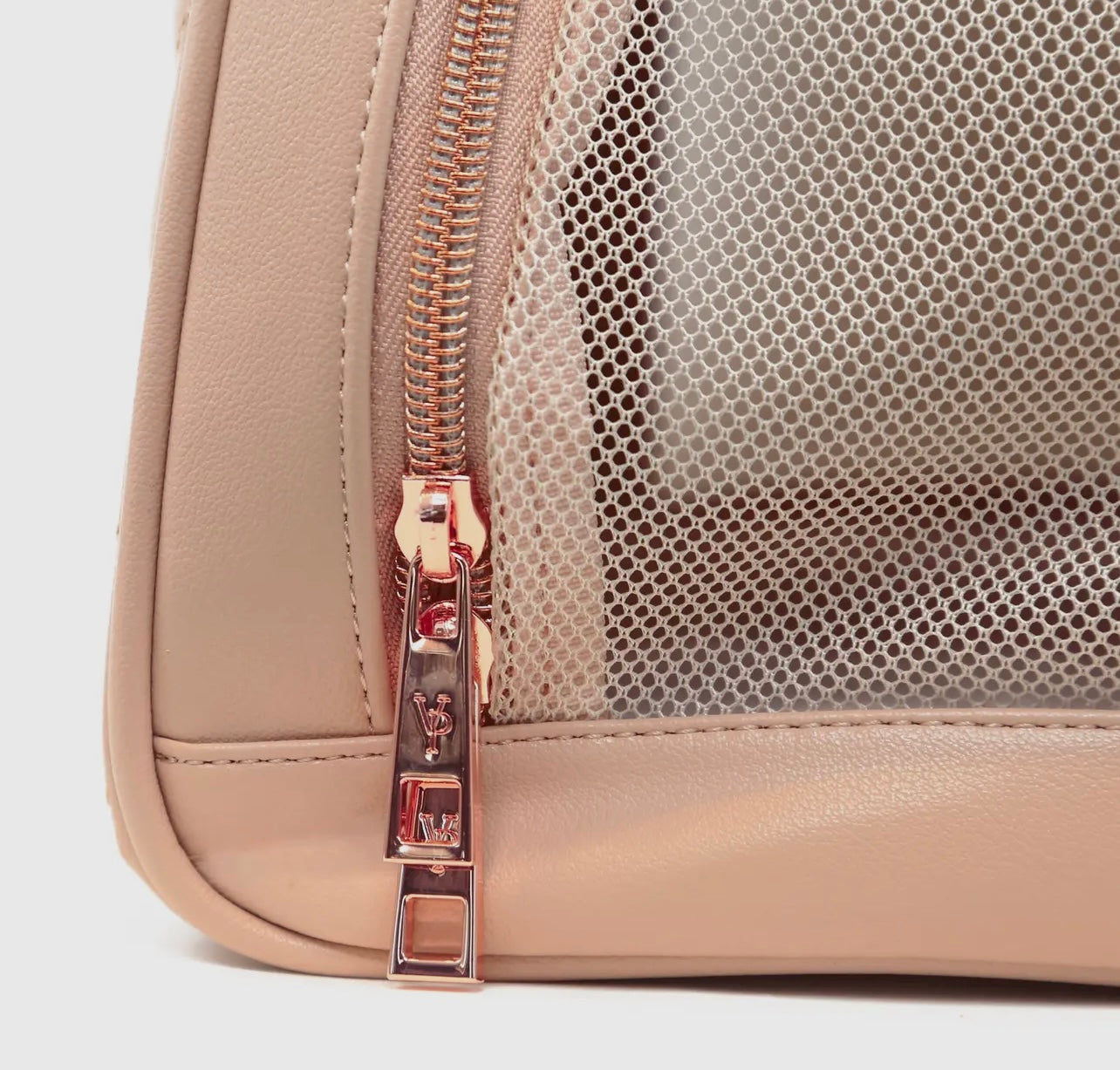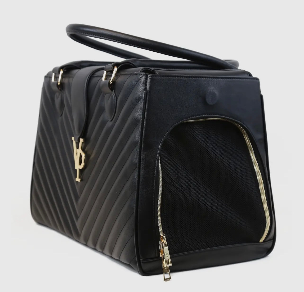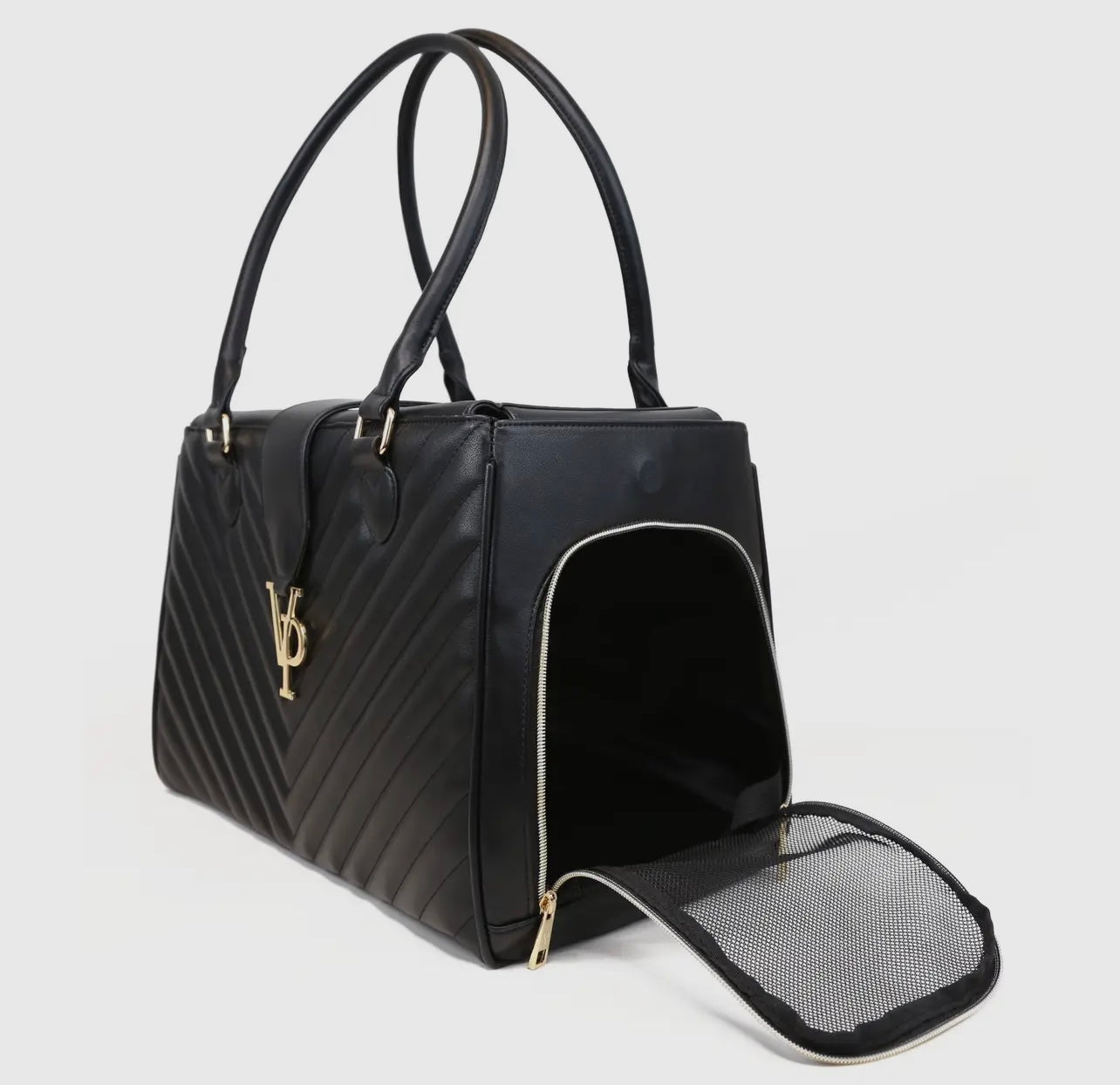 The Vanderpump Monogram Pet Carrier is a stylish and practical accessory designed for medium-sized pets. This carrier features the elegant Vanderpump monogram design, combining luxury with functionality. It is airline approved, making it suitable for travel, and includes comfortable, secure features for your pet's safety and convenience. Ideal for pet owners who want to travel in style while ensuring their pet's comfort and security.